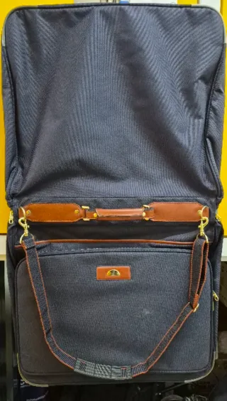 Práctica bolsa de viaje para transportar trajes y ropa delicada. - Diseño elegante y funcional. - Compartimento principal espacioso. Usaba solo una ves para viage a una feria nueva costaba 150 e