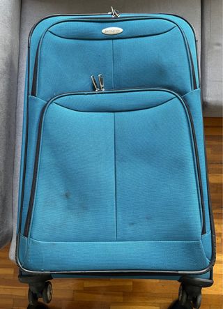 Maleta grande Samsonite de tipo spinner, con capacidad expansible. - Alto: 76 cm (sin ruedas) - Alto total con ruedas: 81 cm - Profundidad: 33cm + cierre expansible (+3 cm) - Ancho: 51 cm - Volumen: 107/118 L - Peso: 3,3 kg - Color azul verdoso. - Diseño con múltiples compartimentos y cremalleras. - Las 4 ruedas funcionan bien y rotan 360 grados.