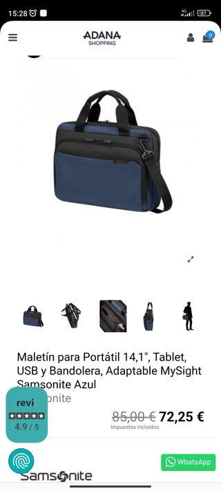 color gris azulado , con departamentos y cajón interiores . con Asa y bandolera. medidas 37x33x17. poco usado pero con una raya en un lateral