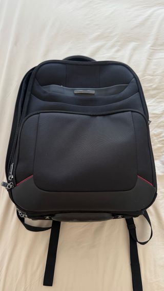 Mochila Samsonite en buen estado. - Diseño elegante y profesional. - Ideal para portátil y otros objetos. - Compartimento principal amplio y espacioso. - Asa superior y correas acolchadas para mayor comodidad. - Ruedas para transporte y asa. - Compartimento para ropa.