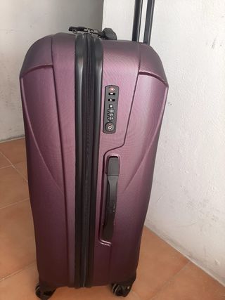 Preciosa maleta de la marca Samsonite, en perfecto estado, doble cierre en cremallera con codigo de seguridad. Apenas se ha usado. Tiene algunos roces y un poco desbocado anclaje codigo. - Diseño elegante y moderno. - Resistente y ligera. - Cuatro ruedas giratorias para facilitar el desplazamiento.