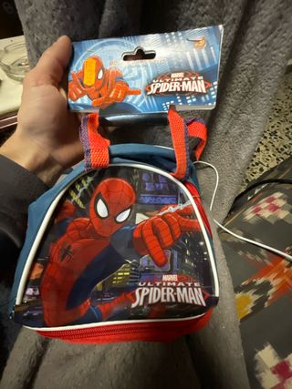 Bolso con diseño de Spiderman de Marvel. Se cierra con cremallera y lleva para colgar que se puede poner o quitar. Medidas: 29x20cm. Está en perfecto estado, como nuevo.