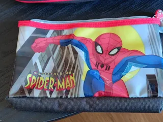 Neceser con diseño de Spiderman. Sin estrenar, no hay fotos del interior porque está precintado. Es un neceser con cremallera y la máscara de Spiderman en relieve. Contiene una colonia en vaporizador de 100 ml y un gel de baño de 60 ml. Perfecto para regalo! Hago lotes y descuentos con otras cosas de mi perfil.