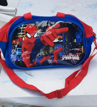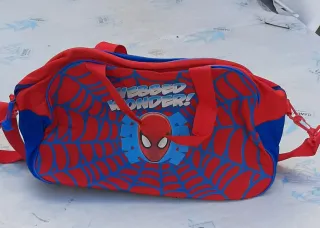 Práctica bolsa de viaje con diseño de Spiderman. Ideal para escapadas o para llevar tus cosas. No es de los chinos. - Diseño con telarañas y Spiderman. - Colores vibrantes rojo y azul.