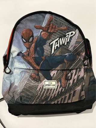 Mochila con diseño de Spiderman de Marvel. - Ilustración de Spiderman en acción. - Detalle de THWIP en la parte superior. - Etiqueta oficial de Marvel Spiderman.