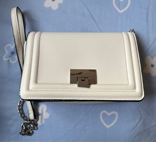 Bandolera blanco de Stradivarius. En buen estado aunque hay desgastes en el cierre. 100% poliester. Talla M, 210mm