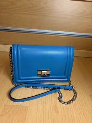 Bolso con un diseño moderno y elegante. Sin uso, impecable como el primer día, resalta cualquier look básico. Es muy práctico al no ser demasiado grande pero cabe lo básico (móvil, cartera, gloss, llaves de casa…) además de que cuenta con un bolsillo interior. Tiene cierre en forma de palanca plateada que ni se nota que es un botón-cierre. Para más detalles por mensajes, sin compromiso!! - Asa de cadena plateada. - Acabado liso, suave al ser de piel sintética.