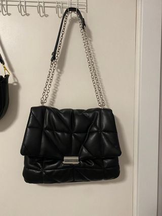 Bolso negro acolchado con cadena