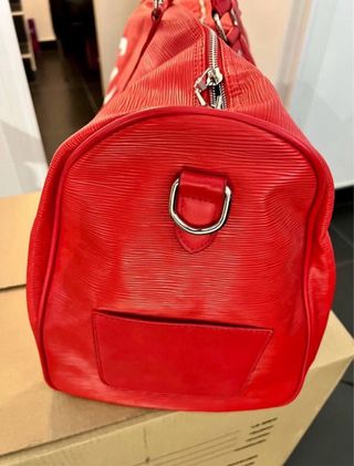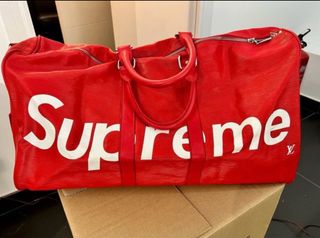 Esta bolsa de viaje y deporte es un accesorio llamativo y espacioso. - Diseño icónico en color rojo. - Logo de Supreme en blanco. - Asa de mano y cremallera superior.