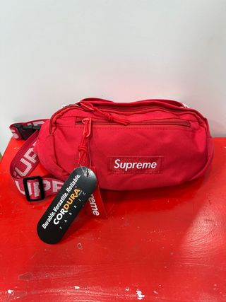 Riñonera de la marca Supreme en color rojo. Diseño moderno y práctico. - Cremallera principal. - Correa ajustable. - Parche con logo.