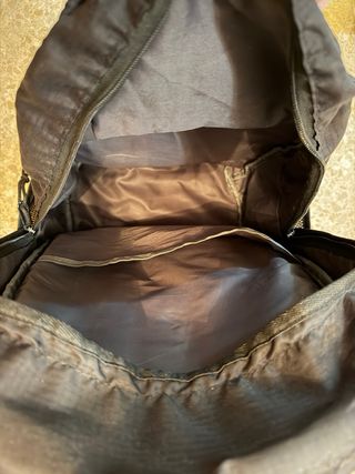 La cremallera tiene un punto que se engancha ,hay que cerrarla despacio,lo demás en perfecto estado. La compré en Singapur,verano del 2025 - Compartimento principal espacioso. - Bolsillos laterales de malla. - Correas ajustables para mayor comodidad.