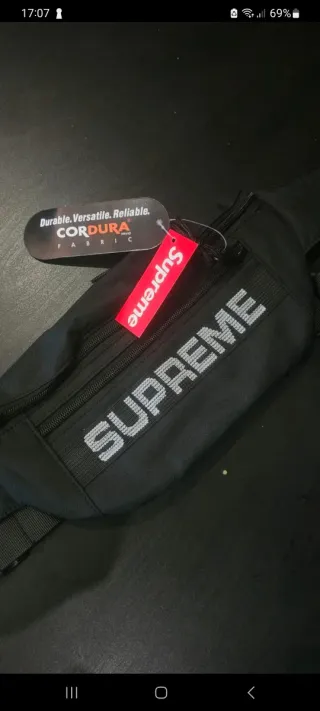 Riñonera de la marca Supreme. - Nueva a estrenar - Escucho ofertas - Correa con logo Supreme repetido. - Etiqueta CORDURA FABRIC visible. - Cierre de cremallera.