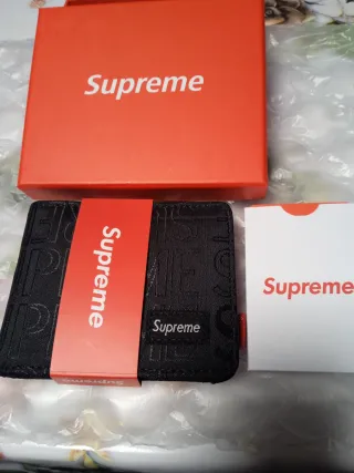 Cartera de la marca Supreme con un diseño moderno. - Color principal negro con detalles en rojo. - Acabado con el logo de la marca en relieve.