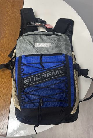 Mochila de la marca Supreme con un diseño moderno y funcional. - Compartimento principal espacioso. - Bolsillo frontal con cierre. - Correas ajustables para mayor comodidad. - Tejido resistente.