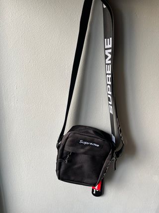 Bolso pequeño de la marca Supreme en color negro. - Correa ajustable con logo. - Cierre de cremallera.