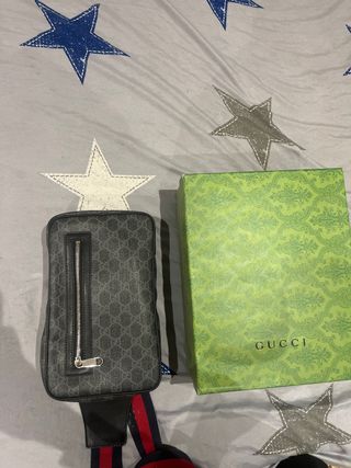 Riñonera de la marca Gucci con un diseño distintivo. - Estampado GG Supreme. - Cremallera frontal. - Correa ajustable.