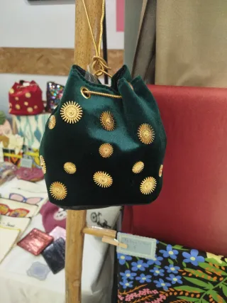 Bolso de terciopelo con un diseño único. - Adornos dorados en forma de estrella. - Cierre de cordón. - Material: Terciopelo. 12€ cada uno