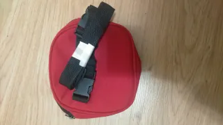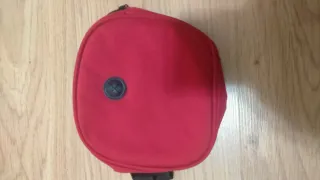 Riñonera de color rojo con cierre de cremallera. - Material exterior de terciopelo. - Interior forrado en tela negra.