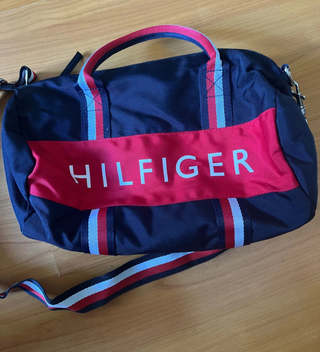Práctica bolsa de deporte de la marca Tommy Hilfiger. Perfecta para llevar tus cosas a la gimnasio o para escapadas cortas. - Diseño bicolor en azul y rojo. - Correa ajustable para llevar al hombro. - Asas superiores para llevar en la mano.