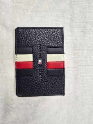 Elegante tarjetero de la marca Tommy Hilfiger. - Diseño con detalles en blanco, rojo y azul. - Material con textura. - Logo de la marca grabado.