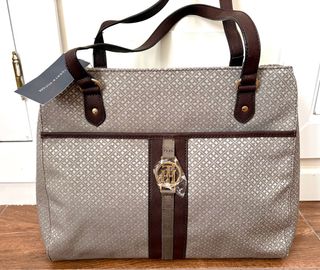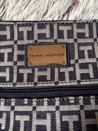 Bolso de mano con un diseño de monograma clásico. - Estampado de monograma TH. - Placa metálica con el logo de Tommy Hilfiger. - Bolsillo exterior con cremallera. - Asa de hombro ajustable. Leva un pequeño picazo en el asa de ahí el precio, por lo demás está impecable