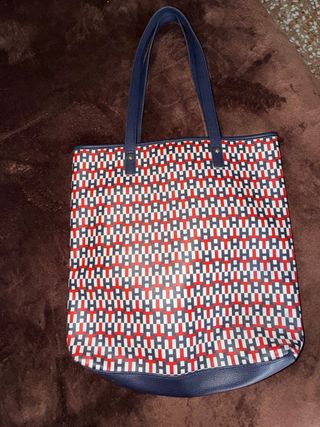 Vendo bolso Tommy Hilfiger tipo tote, usado pero en excelente estado, parece nuevo. ✔️ Sin manchas ✔️ Sin roturas ✔️ Asas y costuras intactas Diseño clásico con estampado monograma en colores rojo, blanco y azul. Muy cómodo y amplio, ideal para uso diario, trabajo o salidas.