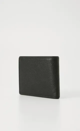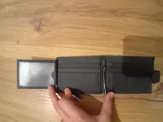 Elegante cartera de cuero genuino. Un accesorio clásico y funcional. - Fabricada en cuero de alta calidad. - Diseño bifold con múltiples compartimentos para tarjetas y billetes. - Acabado negro mate.