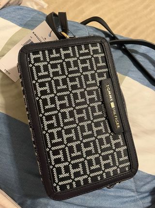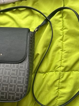 Vendo bolsa Tommy Hilfiger original en muy buen estado. Color oscuro con monograma y tapa con logo dorado. Perfecta para uso diario o salidas casuales. Cierre funcionando bien, sin roturas ni manchas visibles. 🤎 Correa ajustable incluida. 📏 Tamaño ideal para móvil, cartera, llaves y más.