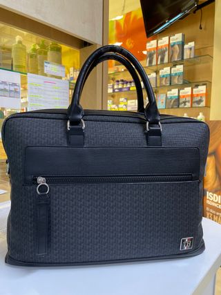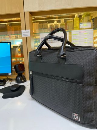 Elegante maletín de la marca Tommy Hilfiger. - Diseño con estampado. - Asa superior. - Bolsillo frontal con cremallera. - Detalle de logo metálico. - COMO SE APRECIA EN LA ÚLTIMA FOTO LAS ASAS ESTÁ DESGASTADA LA PIEL. POR LO DEMÁS PERFECTO