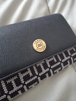 Elegante cartera de la marca Tommy Hilfiger. - Diseño clásico y funcional. - Acabado texturizado. - Detalle de franjas tricolor en la solapa. Cartera regalada por reyes a estrenar, me compraron dos carteras 😑 Está es el precio online la pongo bastante más barata ya que vale 50€ en zalando