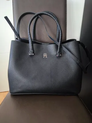 Bolso grande de la marca Tommy Hilfiger. - Perfecto estado. - Color negro. - Amplio, cabe portatil. - Cierre de cremallera. * Regalo bolso pequeño Tommy (última foto) con marcas de uso.