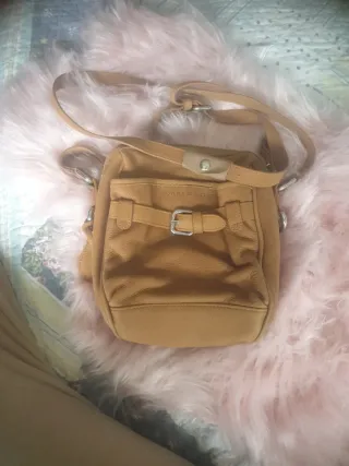 Usado 2 veces, tiene correa larga y luego correa de mano. Cremallera, y compartimento interior pequeño con cremallera también.