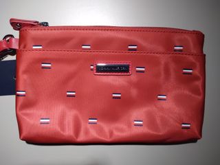 Bolso neceser de la marca Tommy Hilfiger. - Color rojo vibrante. - Diseño con estampado de líneas blancas y azules. - Placa metálica con el logo de la marca en la parte frontal. - Cierre de cremallera superior. - Bolsillo exterior frontal. Neceser / Bolso Tommy Hilfiger rojo 20 cm x 12 cm Doble bolsillo con cremallera Nuevo con etiquetas Precio original : $ 58