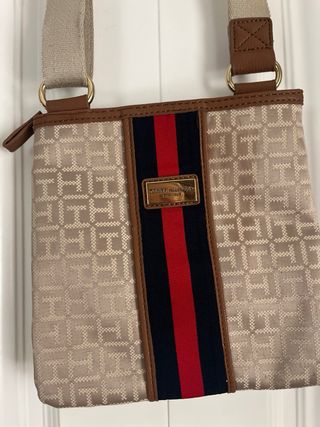 Precioso bolso bandolera de Tommy Hilfiger, en tonos beige y multicolor. Está en perfecto estado. - Asa larga regulable y extraíble. - Cierre de cremallera. - Bolsillo interior.