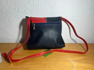 Bolso de la marca Tommy Hilfiger con un diseño bicolor. - Combinación de colores rojo y azul. - Correa ajustable. - Cierre de solapa.