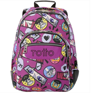 Mochila Totto con un diseño llamativo y moderno. - Compartimentos amplios para organizar tus pertenencias. - Tirantes acolchados para mayor comodidad. - Base reforzada para mayor durabilidad.