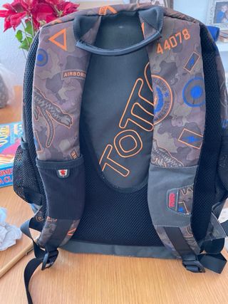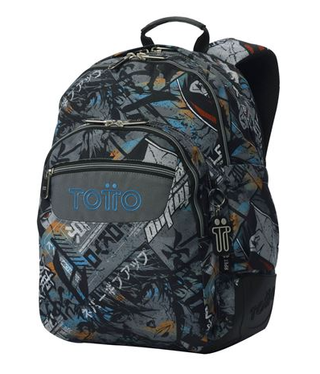 Mochila Totto con un diseño muy juvenil. - Tirantes acolchados para mayor comodidad. - Panel trasero de malla transpirable. - Compartimento principal espacioso, y otro enmedio con cremallera.
