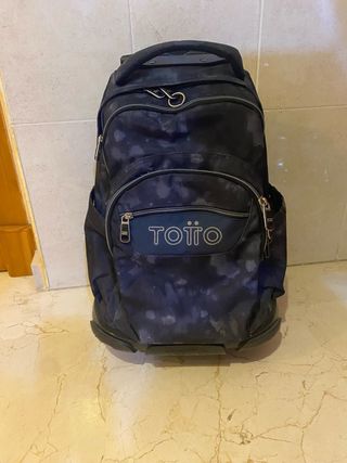 Mochila escolar Totto en color negro, con muy poco uso. Perfecta para llevar todo lo necesario. - Diseño con ruedas para facilitar el transporte. - Compartimentos amplios para organizar tus pertenencias.
