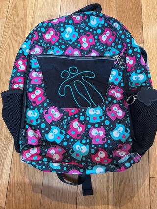 Mochila con un divertido estampado de gatos en varios colores. Perfecta para el día a día. - Diseño con múltiples compartimentos. - Cierre de cremallera. - Tirantes ajustables. - Con neceser incluido