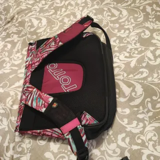 Maleta Totto con un diseño vibrante y juvenil. - Compartimento principal espacioso. - Bolsillos frontales con cremallera. - Bolsillos laterales de malla. - Tirantes acolchados y ajustables. Algo sucia pero está muy muy nueva