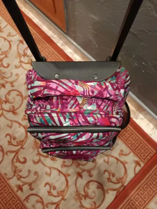 Maleta con ruedas de la marca Totto, ideal para viajes o el día a día. Su diseño es llamativo y práctico. - Compartimento principal espacioso. - Bolsillos frontales con cremallera. - Ruedas resistentes para facilitar el transporte. - Asa extensible.