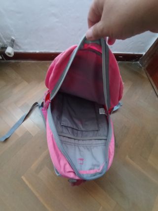 Mochila infantil con ruedas, ideal para el cole. Está en perfecto estado y tiene un diseño colorido y alegre. - Tres compartimentos con cremallera. - Bolsillo frontal. - Asa de mano y ruedas para facilitar el transporte. - Diseño estampado con tonos rosas y multicolores. cemalleras nuevas , ni un raguño , el asa funciona en perfecto estado.