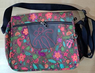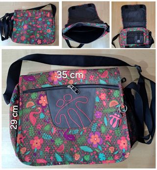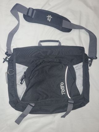 Bolso bandolera regulable y almohadilla, con compartimento para ordenador portátil y multibolsillos, más otro bolsillo grande con cremallera en la parte trasera. Medidas 40x30x10cm. Con etiqueta, sin estrenar, de Totto.