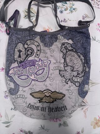 Bolso con un diseño único y llamativo. - Estampado con motivos de corazón, máscara y ángel. - Detalle de texto tous in heaven. - Cierre de botón a presión. - Correa ajustable para llevar al hombro o cruzado.