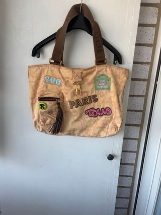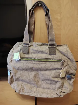 Bolso de la marca Tous con un diseño estampado. - Color beige y marrón. - Cierre de cremallera principal. - Bolsillos exteriores con cremallera. - Adorno de osito. - Asa de hombro. - Incluye etiqueta.
