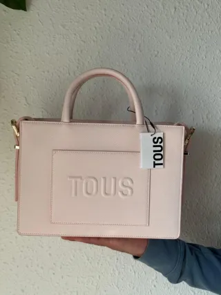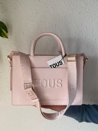 Marca: TOUS Artículo: bolso estructurado Color: rosa bebé / rosa claro Material rígido que mantiene la forma Logo TOUS en la parte frontal Asas cortas + correa larga para mayor versatilidad Tamaño equilibrado y diseño elegante Ideal para oficina, trabajo o ocasiones formales Estado: nuevo con etiquetas - Asa corta para llevar en la mano. - Compartimento frontal con el logo de Tous en relieve. - Cierre superior.