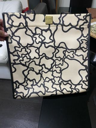 Bolso de la marca Tous con un diseño elegante. NO HAGO ENVÍO - Combinación de colores blanco y negro. - Acabado texturizado con motivos. - Asas negras.