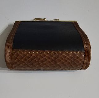 Vendo pequeña cartera o monedero con un diseño de un osito dorado muy similar a la marca Tous, de piel de 7,5x7,5cm , color negro con borde marrones texturizados y con un emblema dorado en forma de osito, cierre metálico tipo boquilla o clip. Diseño compacto y elegante.