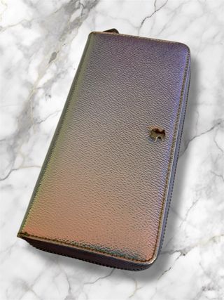 Elegante cartera Tous con un acabado tornasolado y multidimensional que cambia de color. - Diseño iridiscente. - Cierre de cremallera. - Detalle metálico frontal. Color de la tela de la Cremallera desgastada