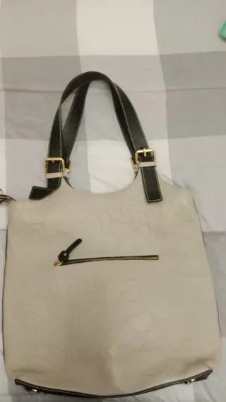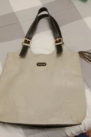 Bolso de la marca Tous en tonos beige y blanco. - Diseño moderno y elegante. - Incluye etiqueta original. - Viene con su bolsa guardapolvo. - Logo de Tous en relieve en la parte frontal.